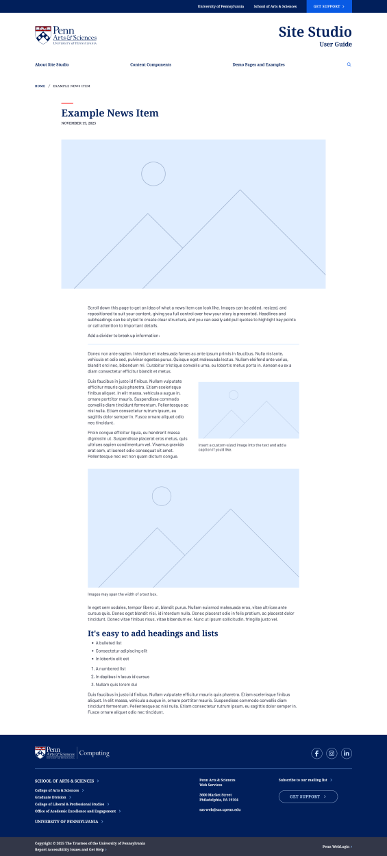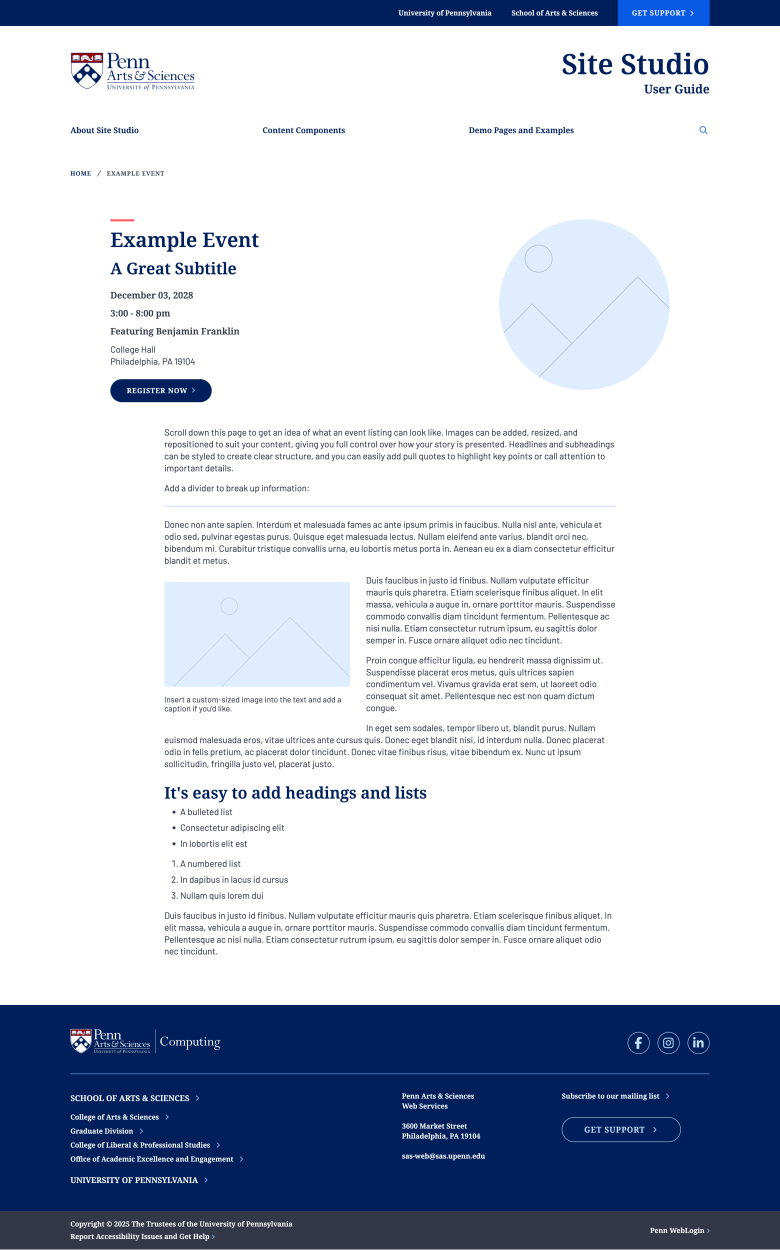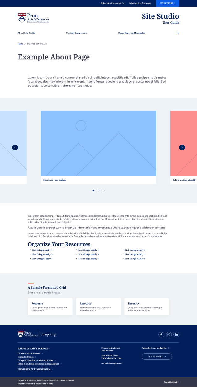 Whether you're showcasing faculty research, announcing news, promoting events, or providing resources for students, Site Studio gives you the tools to create compelling content for your audience.